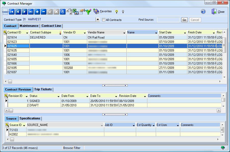 The Contract Manager is totally integrated with all the other modules in the Log Inventory and Management System (LIMS). It administers your contracts for wood procurement or timber harvesting and if required log and wood trading or sales. A multi-level approval process for contracts keeps your financial data secure, and all changes to contracts can be audited.