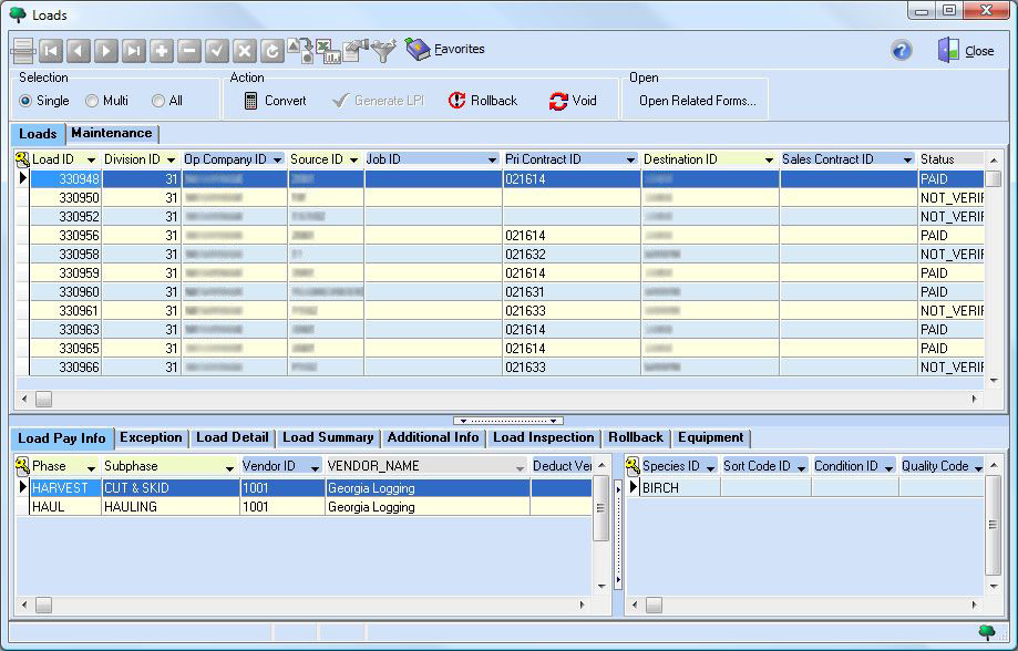 All information is cross-validated against related database tables, and is immediately available to other modules (inventory, payment, etc.) in real time. LIMS is much more than a wood procurement system; it is comprehensive business management software for the forestry, wood products, pulp and paper and lumber industries.