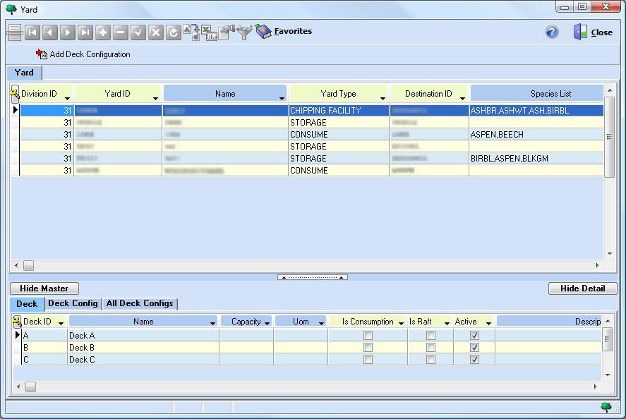 Inventory Manager also updates yard inventories when there are transfers between yards, piles, or for mill usage. It also allows manual yard inventory update by adding, changing, and deleting loads/logs from yards, and keeps a detailed transaction history regarding the inventory status, including deliveries, movements and adjustments.