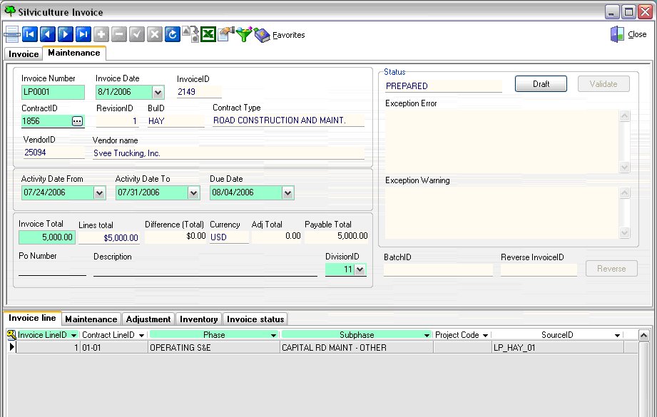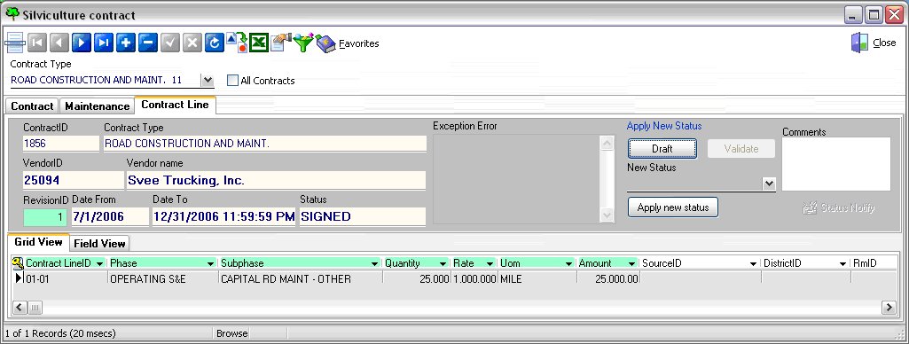 • Enter the specialized contracts used in silviculture, such as aerial photography, road construction, road maintenance, etc.