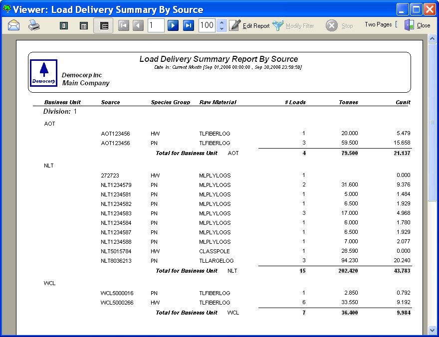 - Log, chip and wood fiber delivery reports