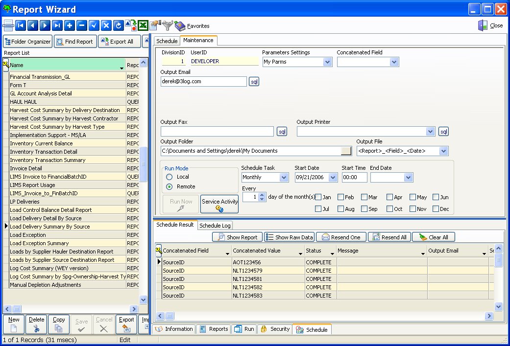 LIMS Report Scheduling features will automatically run and distribute your reports to your own schedule. This includes the ability to email and fax reports as well as hardcopy printing.