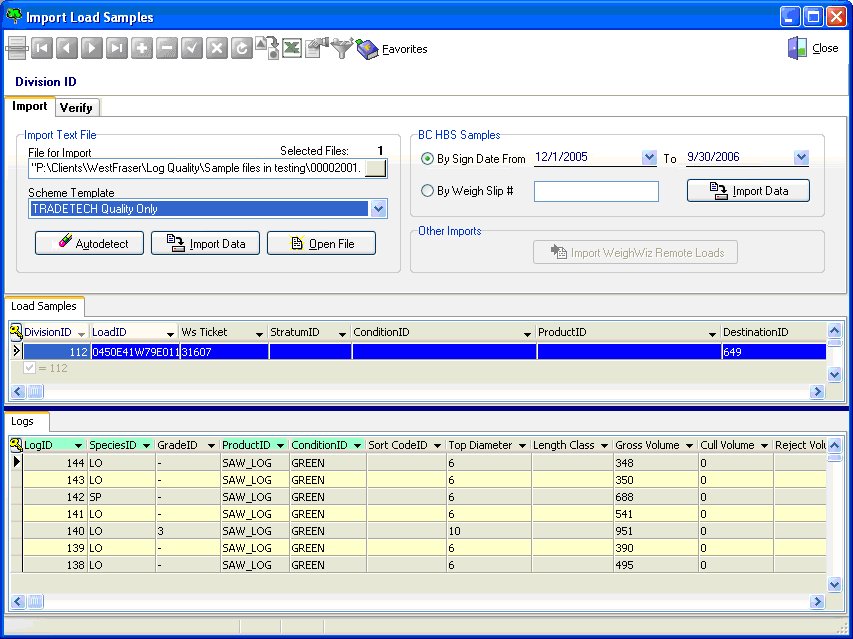 For BC weigh scales, WeighWiz BC offers an equivalent solution. WeighWiz BC is a customized version of WeighWiz, designed to meet BC’s forest industry’s needs. WeighWiz BC has all the features of WeighWiz (large fonts, color-coded fields, customizable interface, easy synchronization with LIMS, etc.), plus the ability to prepare data, print, and generate reports in formats required by MoF.